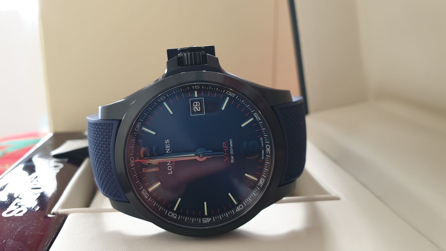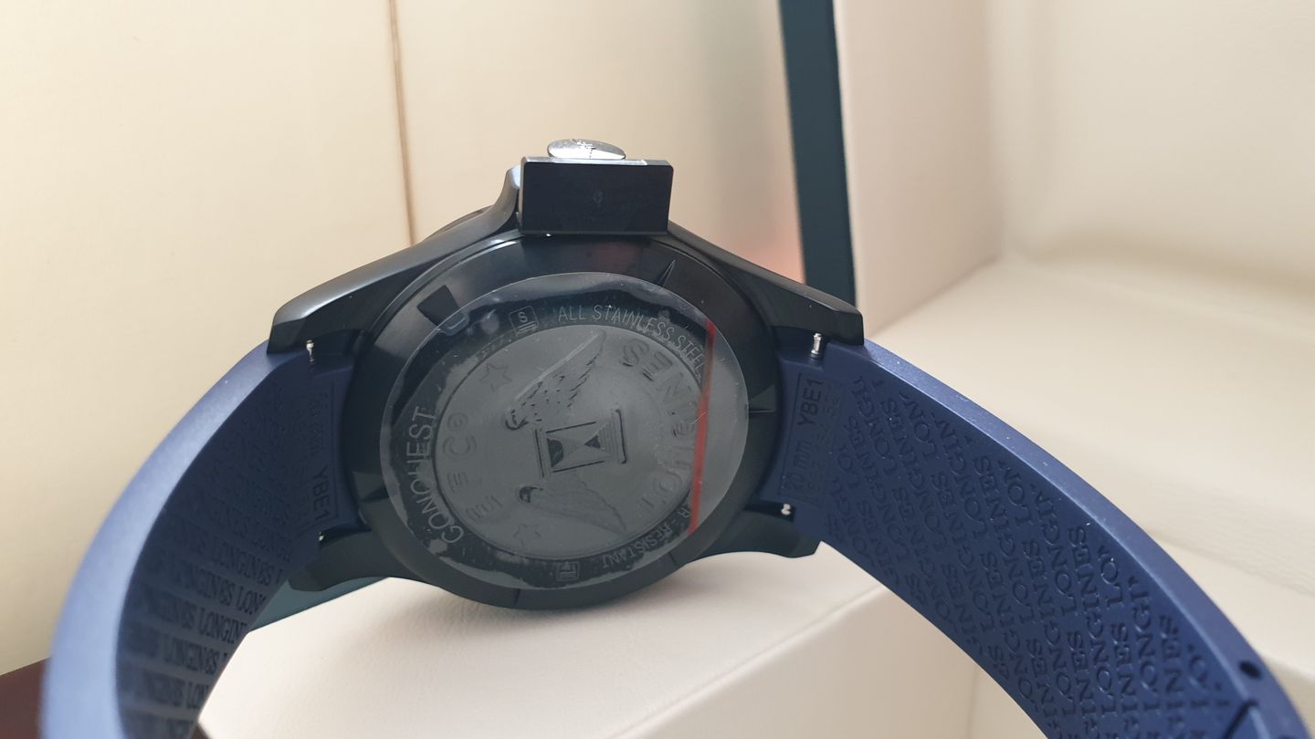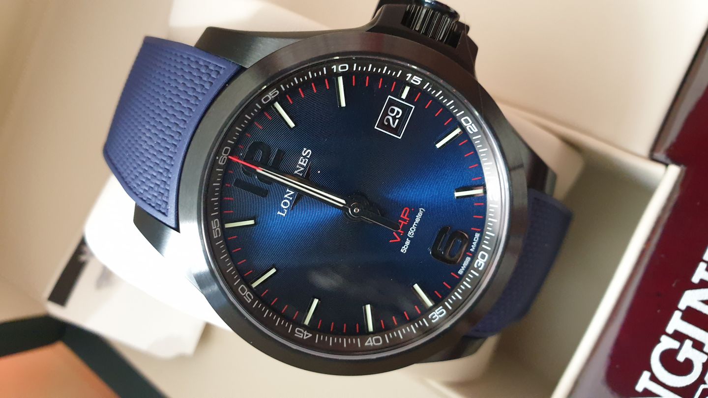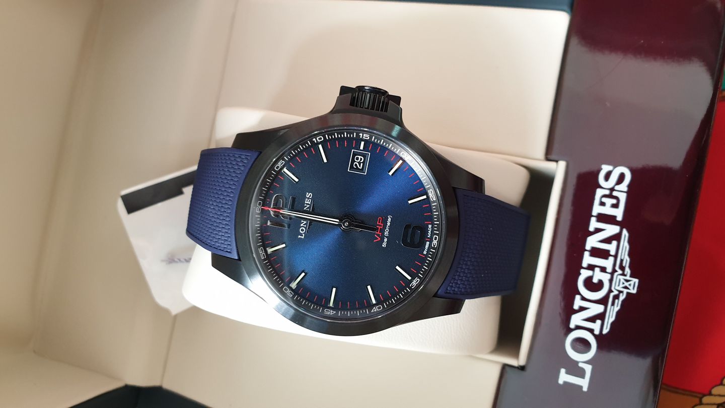 Longines Conquest V.H.P. L3.716.2.96.9 หน้าปัดสีน้ำเงิน ขนาดตัวเรือน 41mm สายยางสีน้ำเงิน ไม่มีรอยขีดข่วน