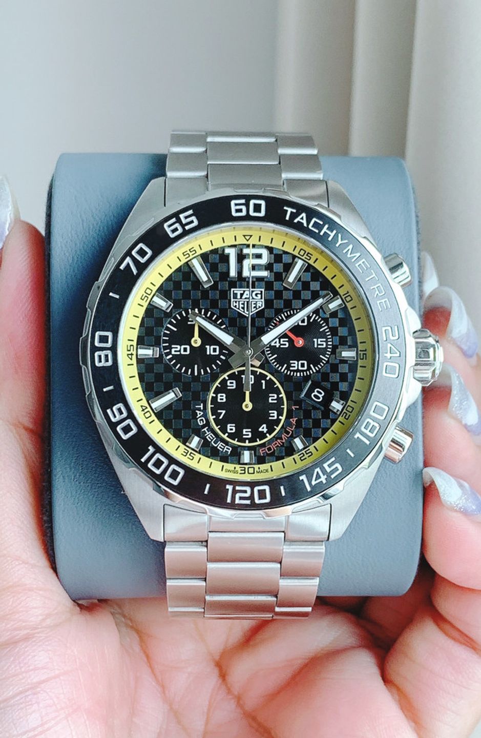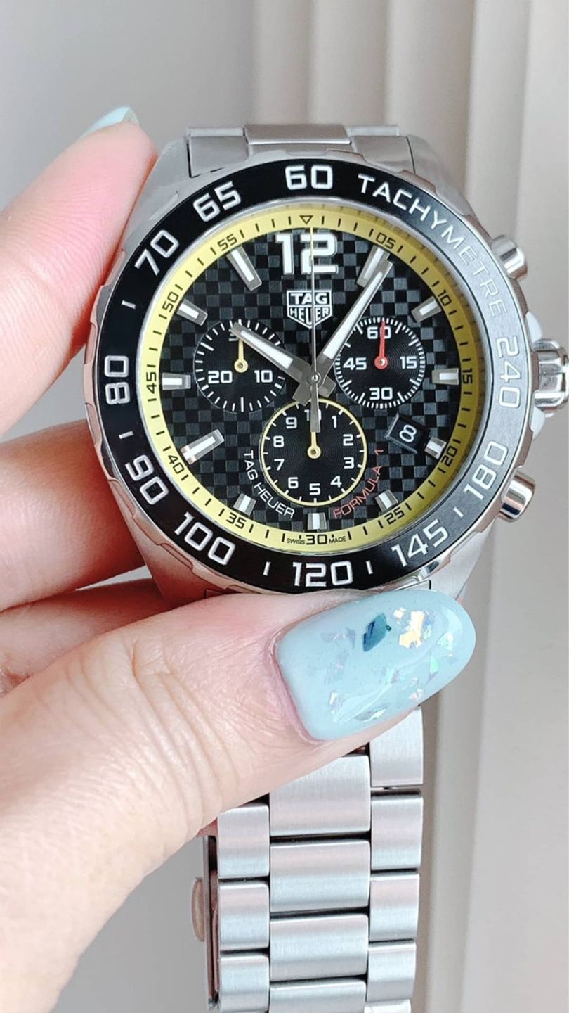 ⚫️✨รุ่นใหม่ชนShop Used:T.a.gรุ่นF1 Black Ceramic Chronograph 43mm.Ref:CAZ101AC รุ่นนี้ให้ลุคแนวสปอร์ต ขอบCeramic สีดำด้านหน้าปัดสีดำตัดด้วยขอบสีเหลือง สีนี้หายากมาก ขนาดหน้าปัด 43mm.เครื่องระบบQuartz ใช้งานง่าย สภาพนาฬิกาโดยรวม98%++สวยใหม่มาก ✨อปก.ครบ 🟡ราคา 47,000.-(NetPrice) 🟡ราคาShop 87,500.- ❄️ใบรับประกันตัวเครื่องจากทางร้าน 1 ปี ❄️รับซื้อคืนเทิร์นเปลี่ยนแบบ 💳บัตรเครดิตชำระเงินออนไลน์ได้ค่ะ ❄️ทางร้านมีบริการนัดรับ เช็คแท้ปลอมที่ Expert Watch สาขา CTW ได้ค่ะ☺️ ❄️กทม.มีบริการจัดส่งด่วนๆ ให้ฟรีใช้เวลา 1 ชม.🛵 ::::::::::::::::::::::::::::::::::::::::::::::::::: สอบถามเพิ่มเติม Line id : nb_shop895 Tel : 089-2249119