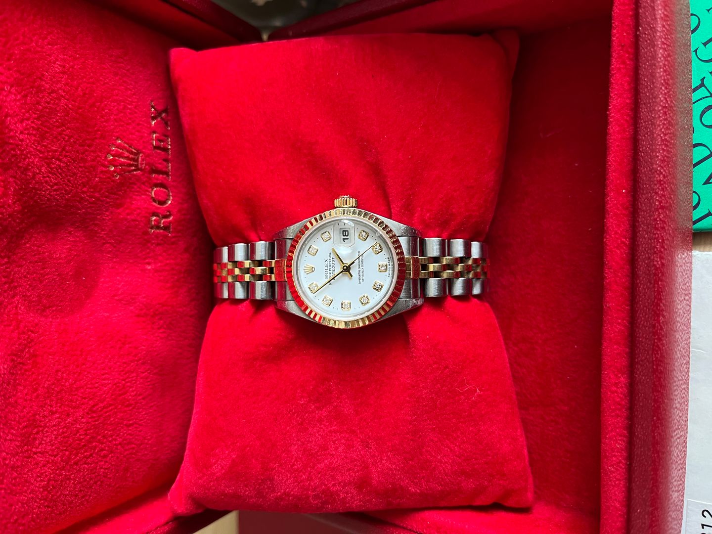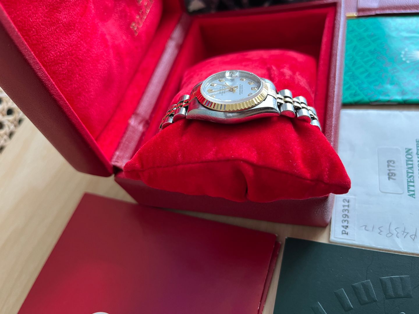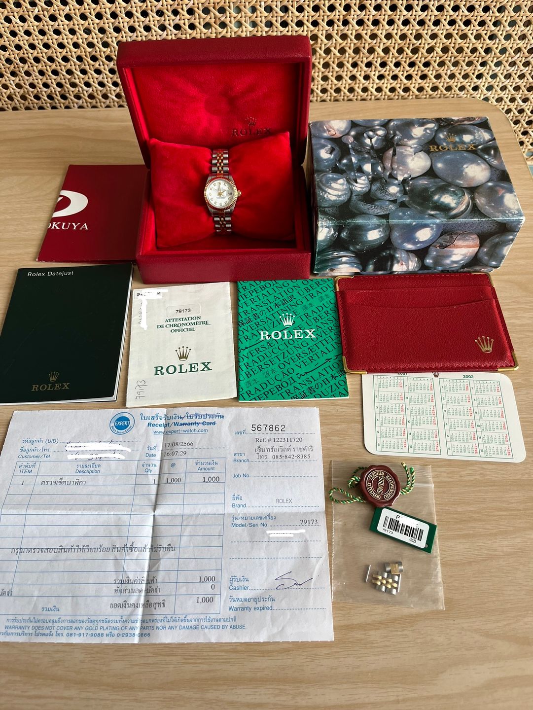 Rolex Lady Datejust 26mm Ref. 79173 หน้าขาว หลักเพชร กระจก Sapphire ขอบหยัก สาย Jubilee ปี 2000 Serie P สภาพสวยเลยครับ กล่องใบ อปก.ครบ มีใบตรวจเช็ค Expert watch