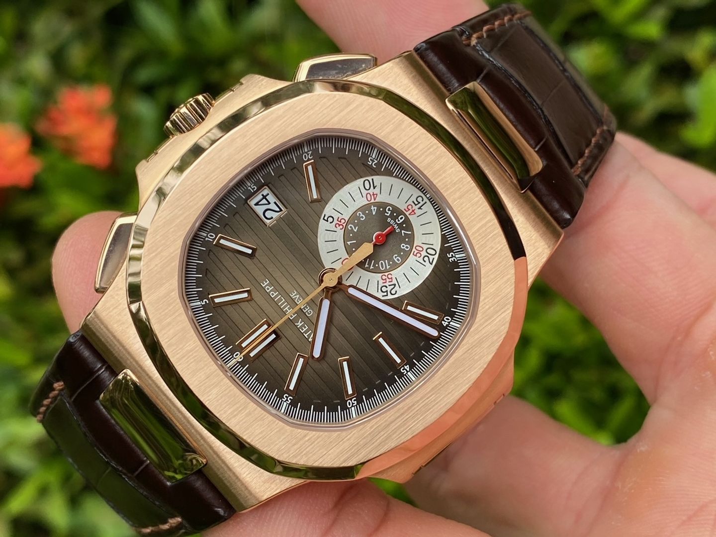 Patek Philippe Nautilus 5980r flyback chronograph Ref: 5980r-001 PP seal / 2023 ขนาด 40mm วัสดุ Rose gold 18k