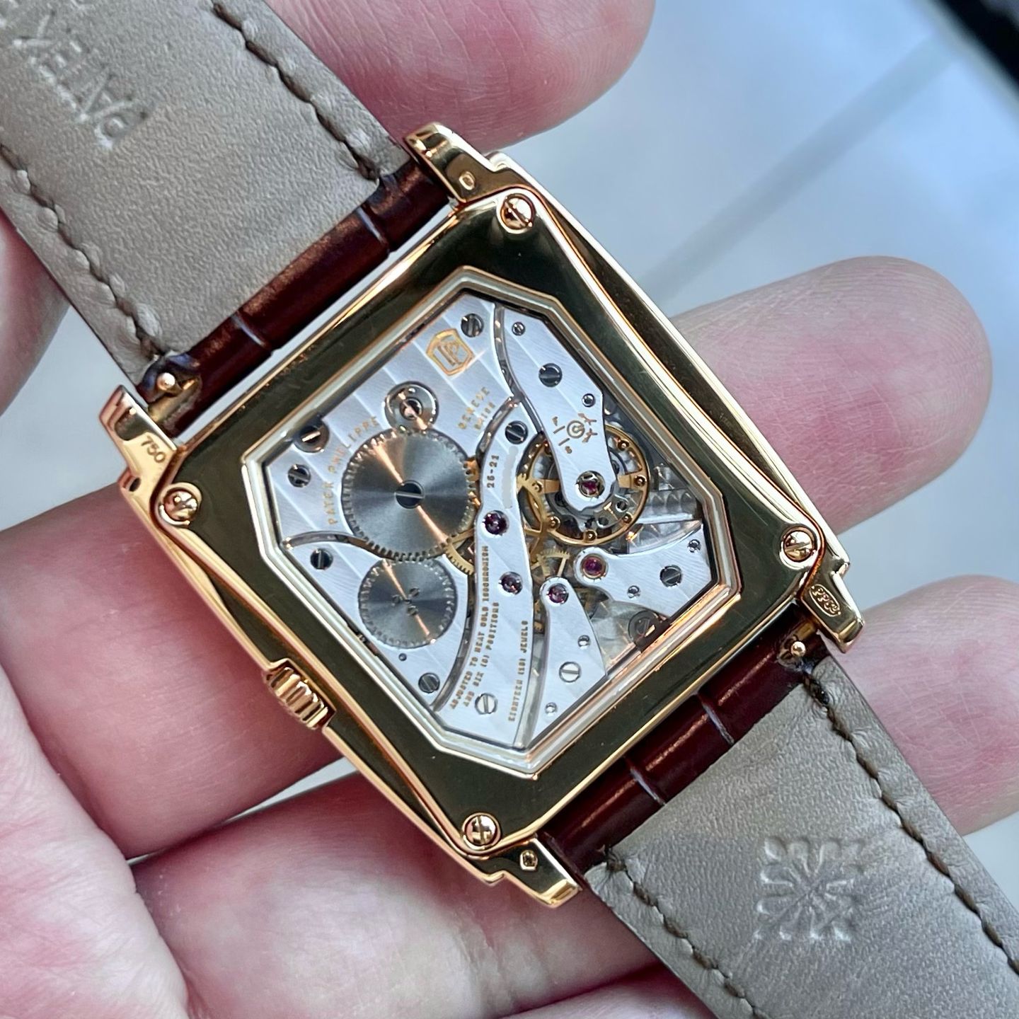 ตัวเรือนทรง TONNEAU มาในวัสดุ 18K YELLOW GOLD ขนาด 33MM X 43MM (INCLUDING LUGS) บางเพียง 7.5MM ออกแบบอย่างมีชั้นเชิงด้วย STEPPED ART DECO-STYLE CASE ทั้งหมดได้รับการขัดแต่งด้วย POLISHED หน้าปัด WHITE DIAL ประดับด้วย ARABIC NUMERAL ในตำแหน่ง 12 นาฬิกาและ APPLIED GOLD BATON MARKERS ขอบหน้าปัดเป็น RECTANGLE CHAPTER RING เพื่อบอกนาทีละเอียด เข็ม YELLOW GOLD ทรง FEUILLE HANDS สวยงาม เข็มวินาทีที่ตำแหน่ง 6 นาฬิกาล้อมรอบด้วย GOLD-RIMMED ให้ความ CLASSIC ใน STYLE DRESS 2 เข็มครึ่ง ด้านหลังสามารถชื่นชม CALIBER 25-21 ผ่าน CRYSTAL SAPPHIRE ซึ่ง CALIBER นี้มีความพิเศษมาก ได้รับการบรรจงออกแบบให้เป็นรูปทรงเฉพาะในแบบเดียวกับ CASE ไม่ได้เป็นการ SHARE CALIBER มาจากรุ่นอื่น ขับเคลื่อนด้วย MANUAL WINDING ได้รับการขัดแต่งด้วยมาตรฐานที่สูงที่สุด RHODIUM PLATED WITH FAUSSES COTES DECORATION ใน STYLE PATEK PHILIPPE และยังได้รับ STAMPED ด้วย PATEK PHILIPPE SEAL การันตีมาตรฐานของการผลิตนาฬิกาสูงสุด นอกจากความงามปราณีตขั้นสูงสุด CALIBER นี้ยังมาพร้อมคุณสมบัติชั้นสูง อาทิ STRAIGHT-LINE LEVER ESCAPEMENT GYROMAX MONOMETALLIC BALANCE ADJUSTED TO HEAT, COLD, ISOCHRONISM AND 5 POSITIONS และยังมี TECHNOLOGY SELF-COMPENSATING FREE-SPRUNG FLAT BALANCE SPRING อีกด้วย CALIBER สำรองพลังงานสูงสุดระดับ 44 HOURS นาฬิกามาพร้อมสาย ALLIGATOR จับคู่กับ ORIGINAL SOLID YELLOW GOLD PIN BUCKLE ทรงสุด CLASSIC