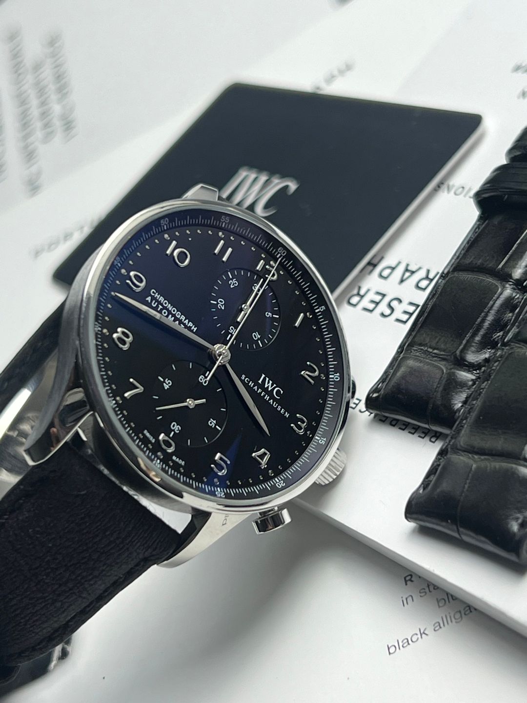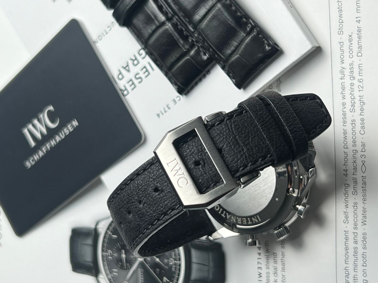•movement : IWC Auto Cal.79350 •case : 41mm •สภาพ : ตัวเรือนสภาพสวยกริ๊ป ไร้รอยหนัก สายหนัง สภาพดี กระจกsapphire โดยรวมดีมากครับ •อุปกรณ์ : กล่องแทน คู่มือ 2 เล่ม ใบรับประกัน 2018
