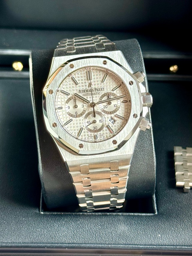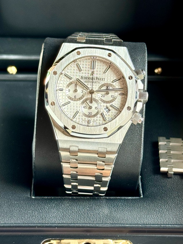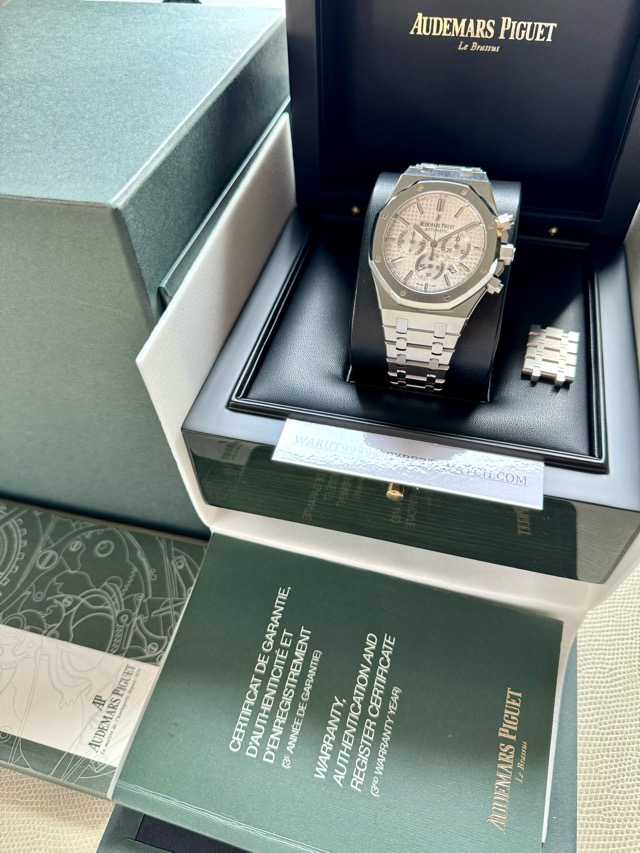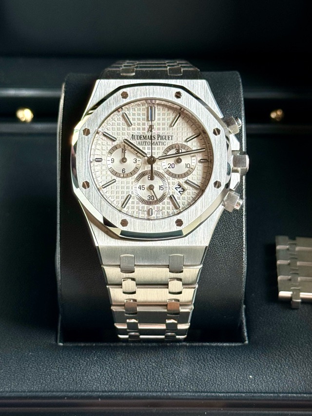 Audemars Piguet AP26320ST Royal Oak White Dial 41mm Steel Chronograph Discon Model สุดสวยใส่สวยเข้าข้อสุดยอดฟังชั่นครบสุดคุ้มใส่ได้ทุกวันออกได้ทุกงาน หายากแค่ไหนไม่ต้องสืบหน้านี้สวยมากครับได้ Series H 2013 🥰