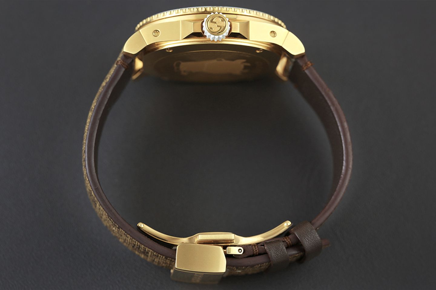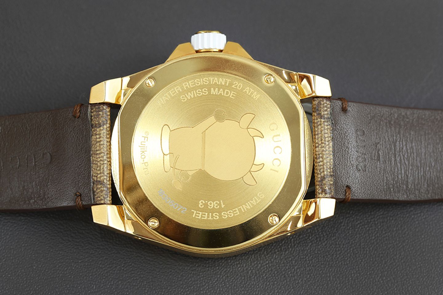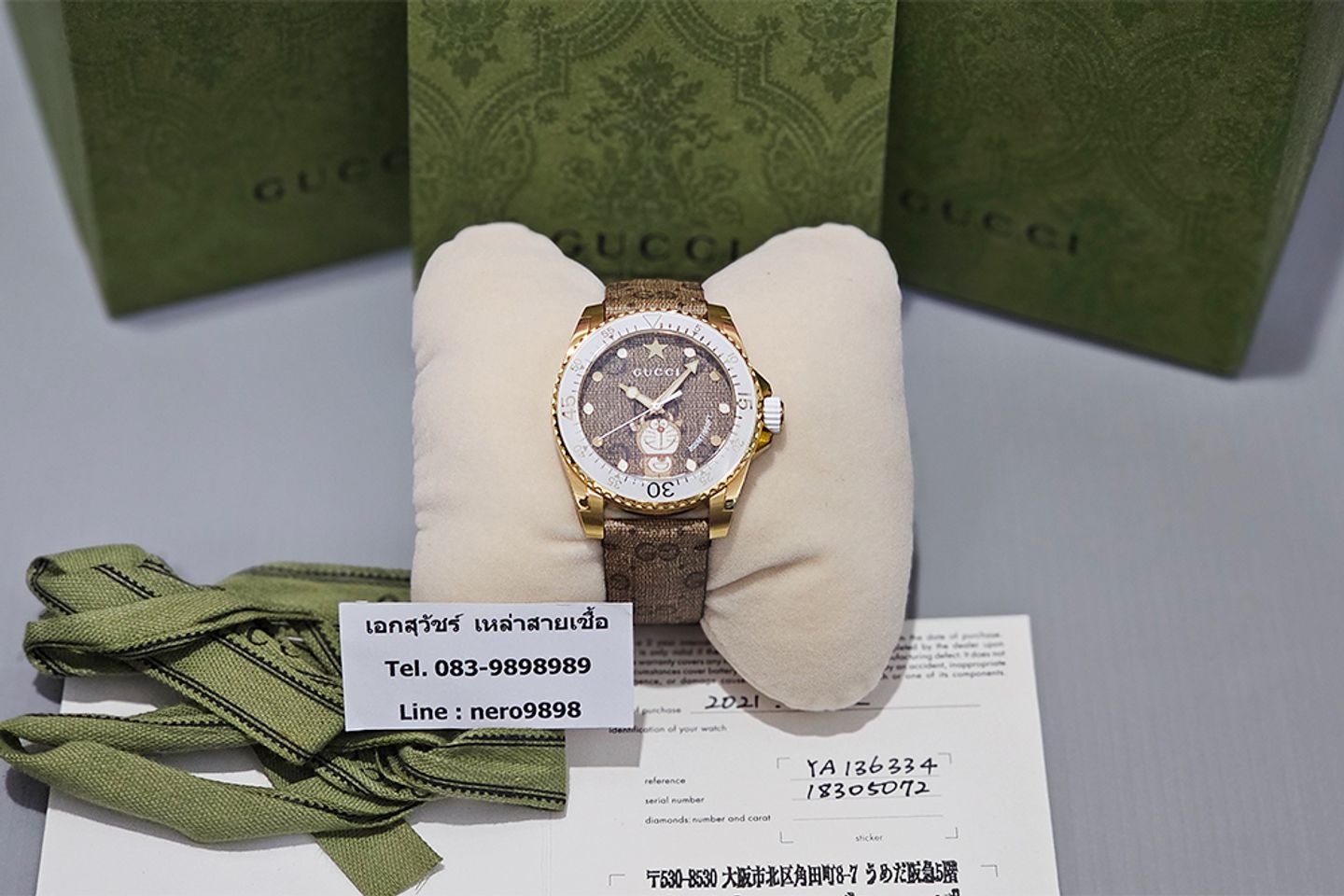 GUCCI DRIVE DORAEMON BROWN DIAL สวย หายากมาก ของครบ น่าสะสม ขนาด Size 40mm. ระบบ Quartz หน้าปัด Doraemon พื้นลายผ้า สายหนังแท้ ท็อปตกแต่งลายผ้า GC กระจกแซฟไฟร์ สวยไร้ริ้วรอย ออก Shop Japan ปี 2021 อุปกรณ์ทุกอย่างอยู่ครบๆ สภาพเก็บสะสมสวยจัด โดยรวม 95%++