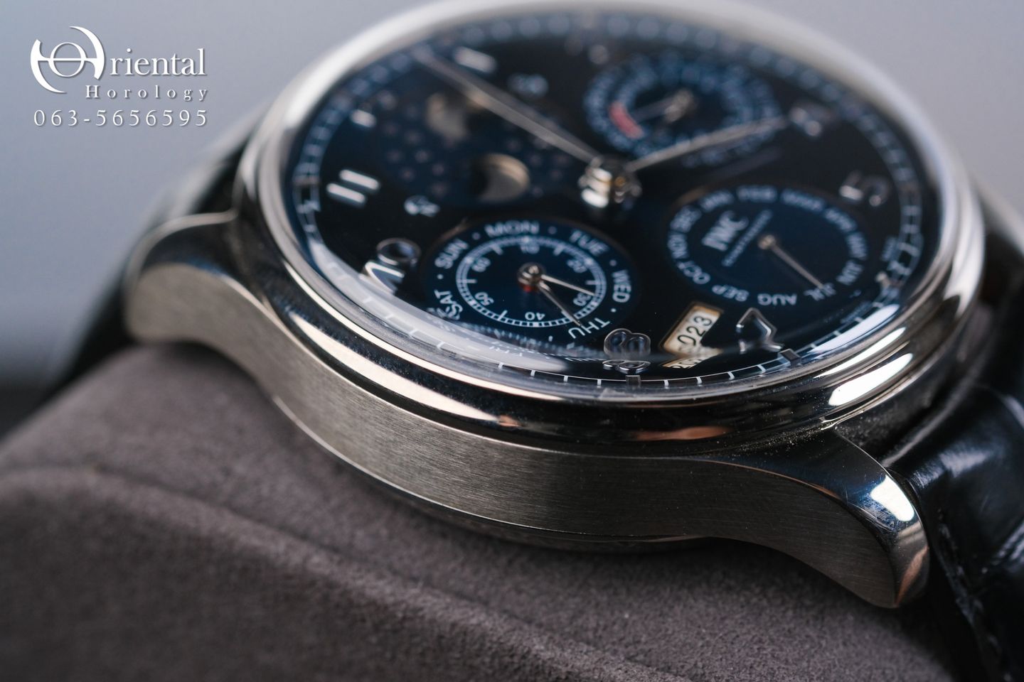 🌟 Dress watch ที่มีดีไซน์สปอร์ตสุดหรูในตระกูล Portuguese มาในขนาด 44 มม. วัสดุ 18K White Gold ล้ำค่า มาพร้อมฟังก์ชัน Perpetual Calendar บอกวัน วันที่ เดือน ปีแบบ 4 หลัก และ Moon phase แมทช์มากับสายหนังจระเข้สีดำเสริมลุคภูมิฐาน หน้าปัดสีน้ำเงินเล่นแสงตัดกับชุดเข็มและหลักเวลา White Gold แมทช์ง่ายสุดๆ สวมใส่ได้ทุกวันทุกโอกาสครับ