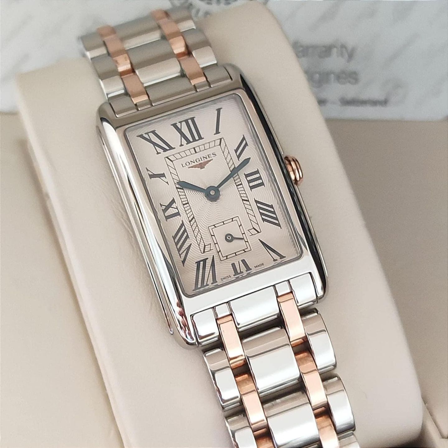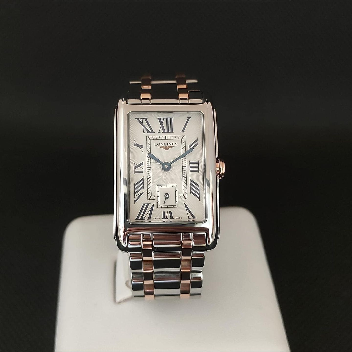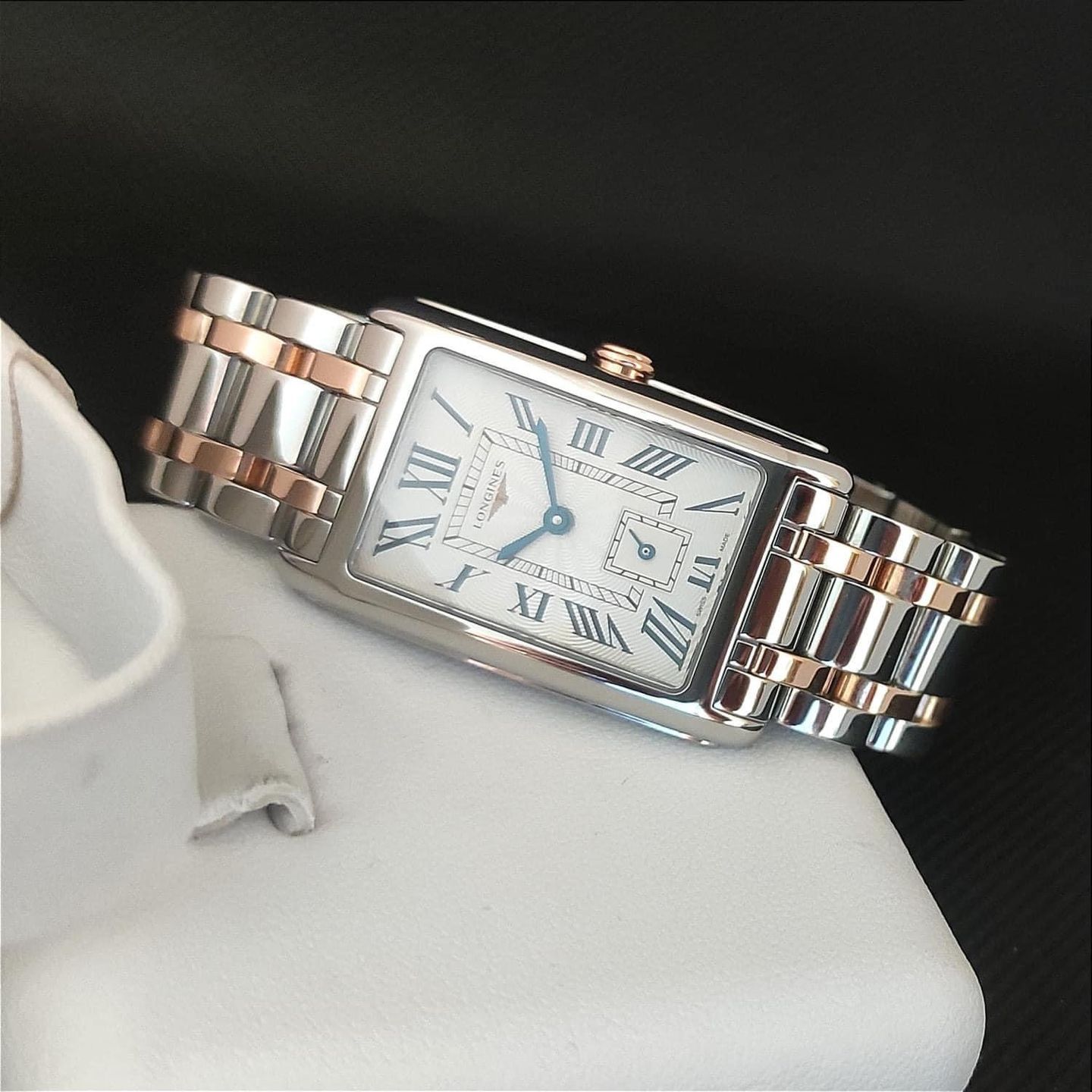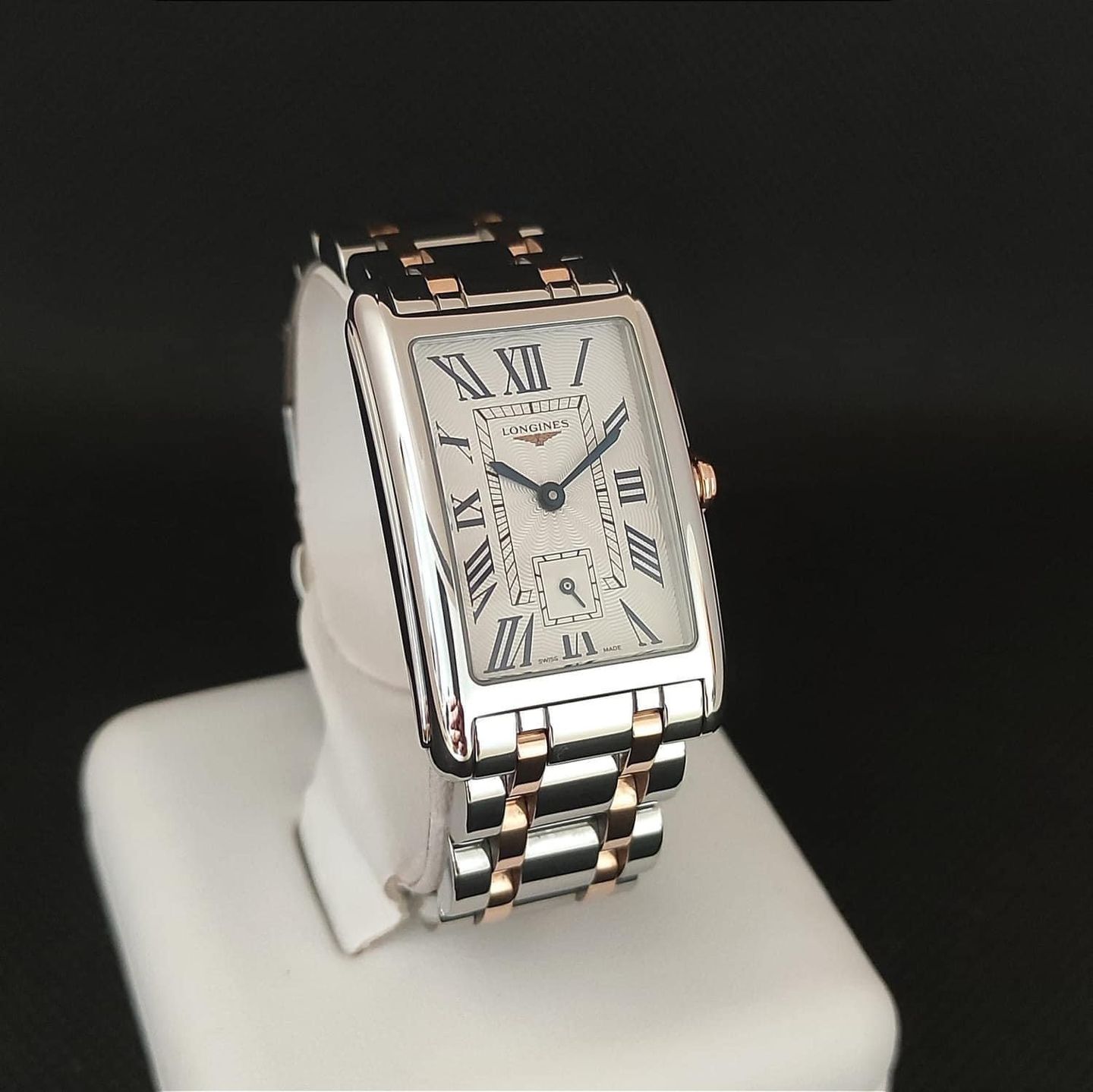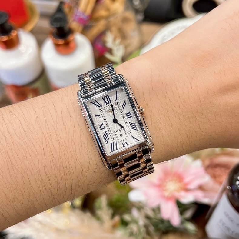 Longines Dolce Vita Flinque Silver Dial 23.3mm Steel/ 18K Rose Gold Ladies Quartz Watch.