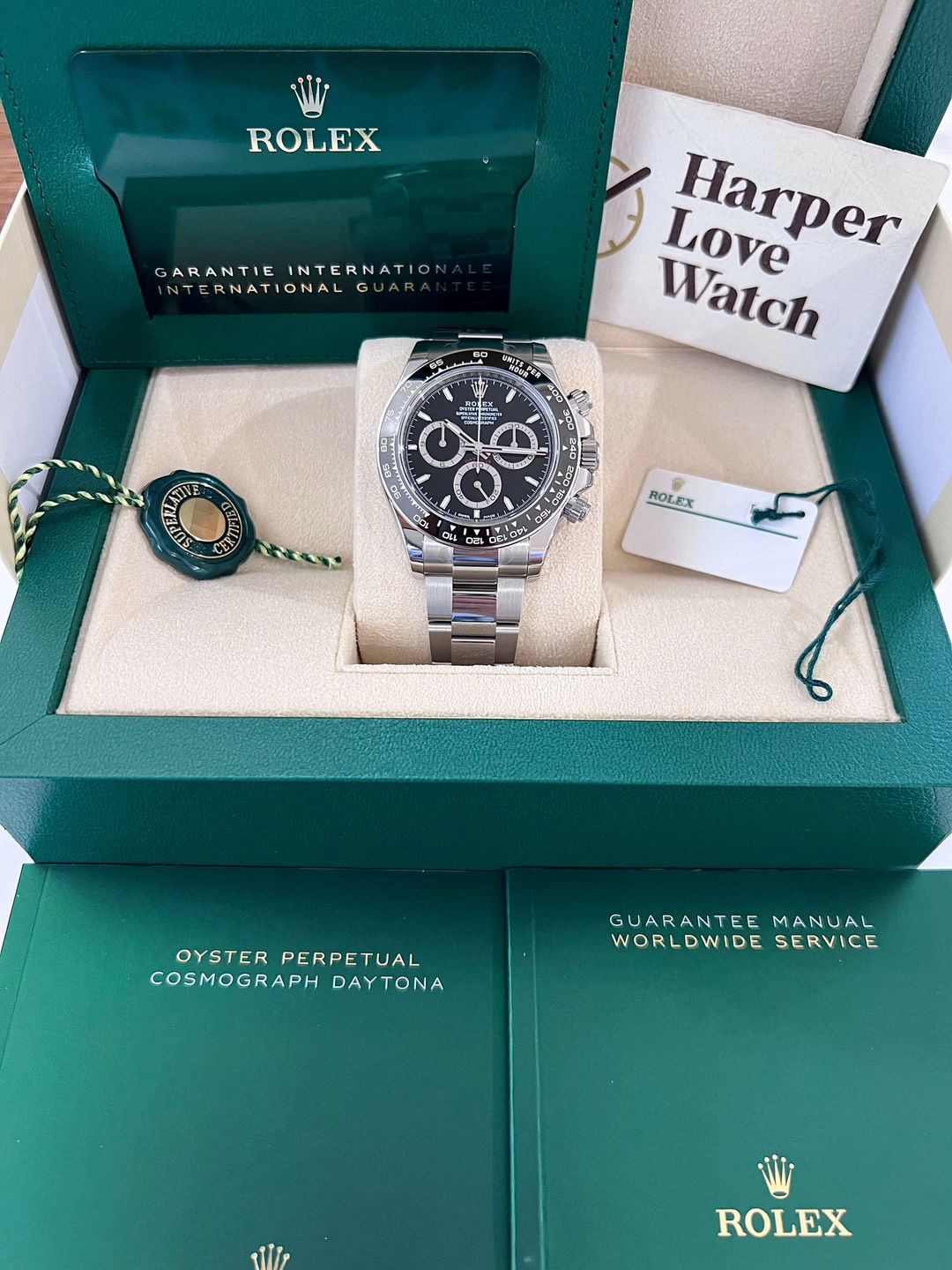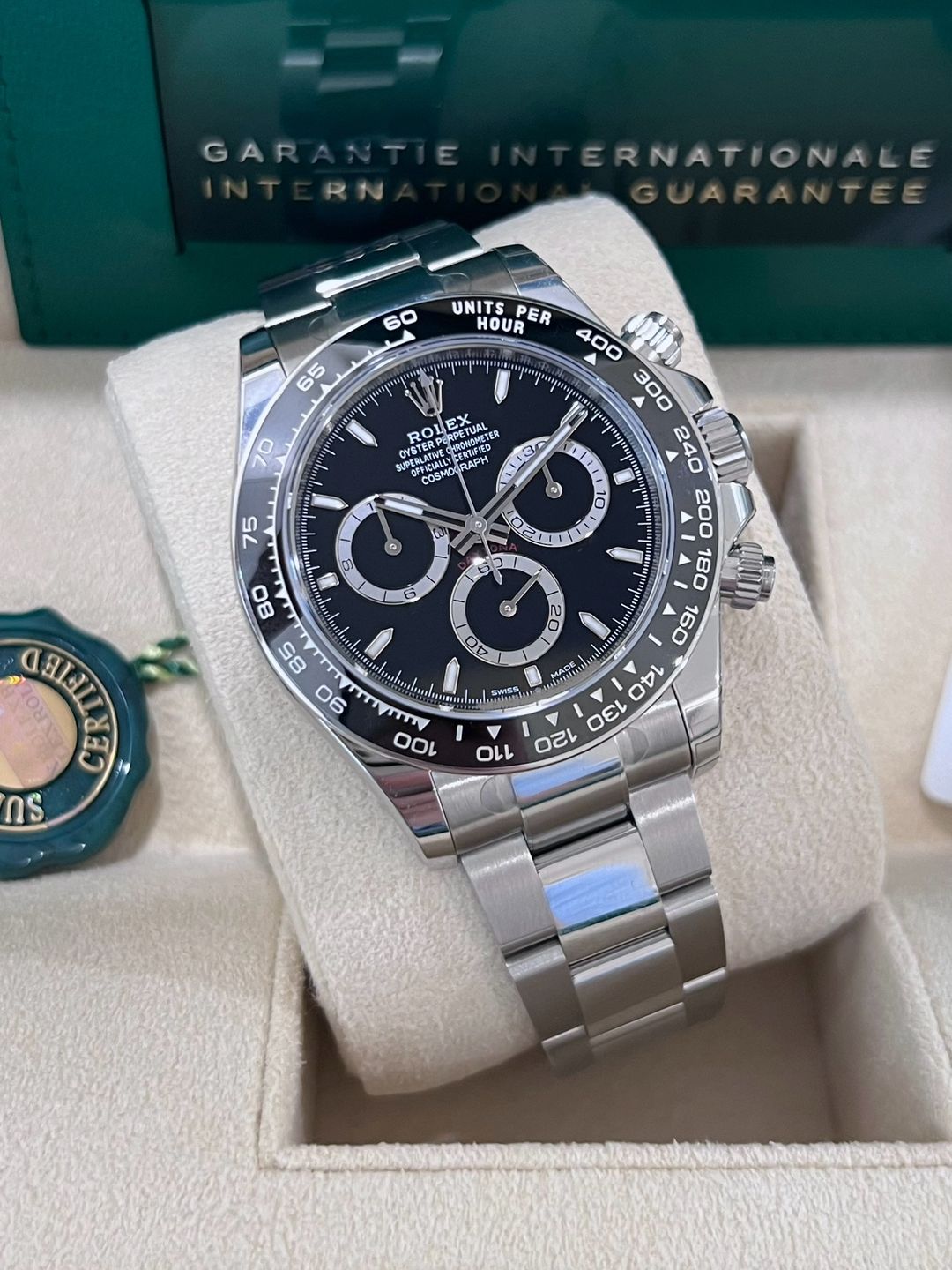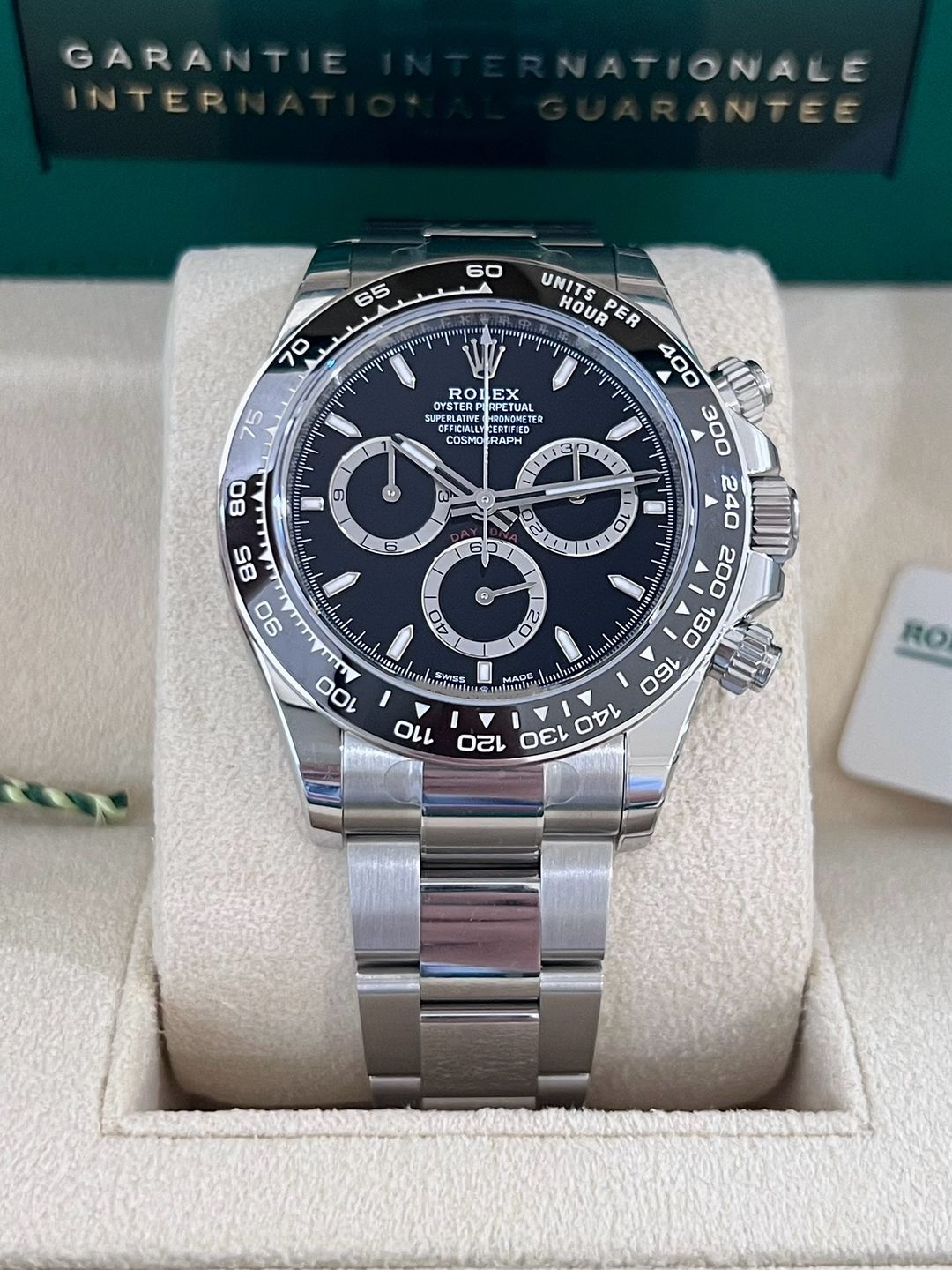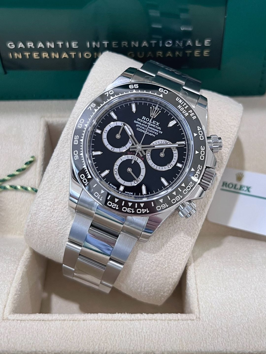 (New) Rolex Daytona Black dial หน้าดำ รุ่นใหม่ ขนาดตัวเรือน 40mm Ref. 126500LN ✅ของใหม่100% ไม่เคยผ่านการใช้งาน ✅ใบไทย🇹🇭 08/2024 ประกันทั่วโลก 5 ปี ✅อุปกรณ์ครบ กล่อง/ใบรับประกัน คู่มือ แทคขาว เหรียญเขียวครบ Full set