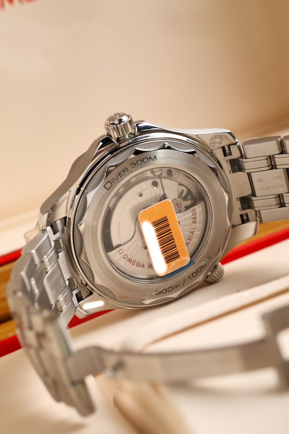 ตัวเรือน Stainless Steel ขอบ Ceramic สายเหล็ก หลังเปลือยเครื่อง Automatic Omega Calibre 8800