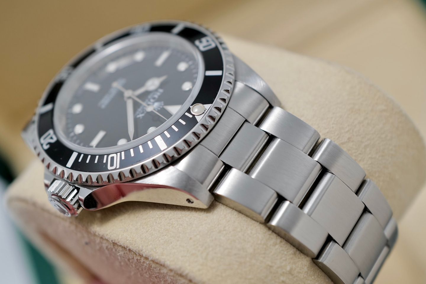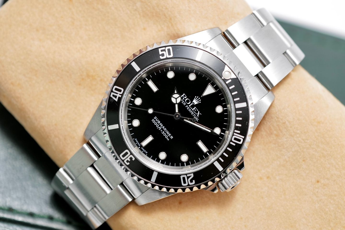 🌟 ตัวเรือน Oystersteel ขนาด 40 มม. – ดีไซน์คลาสสิกที่ยังคงเสน่ห์จนถึงวันนี้ 🌟 หน้าปัดดำ “2 แถว” (Two Line Dial) – ข้อความบนหน้าปัดน้อย เรียบง่ายสุดคลีน 🌟 ขอบ Bezel ฟิล์มสีดำ – ขอบหมุนได้ทิศทางเดียว เอกลักษณ์ดั้งเดิมของ Submariner 🌟 กระจก Sapphire + ไม่มี Cyclops Lens – ความเรียบง่ายที่นักสะสมตัวจริงชื่นชอบ 🌟 กลไก Automatic Cal.3000 – กลไกยอดนิยมในยุค 2000 ที่เดินเที่ยงตรงและทนทาน